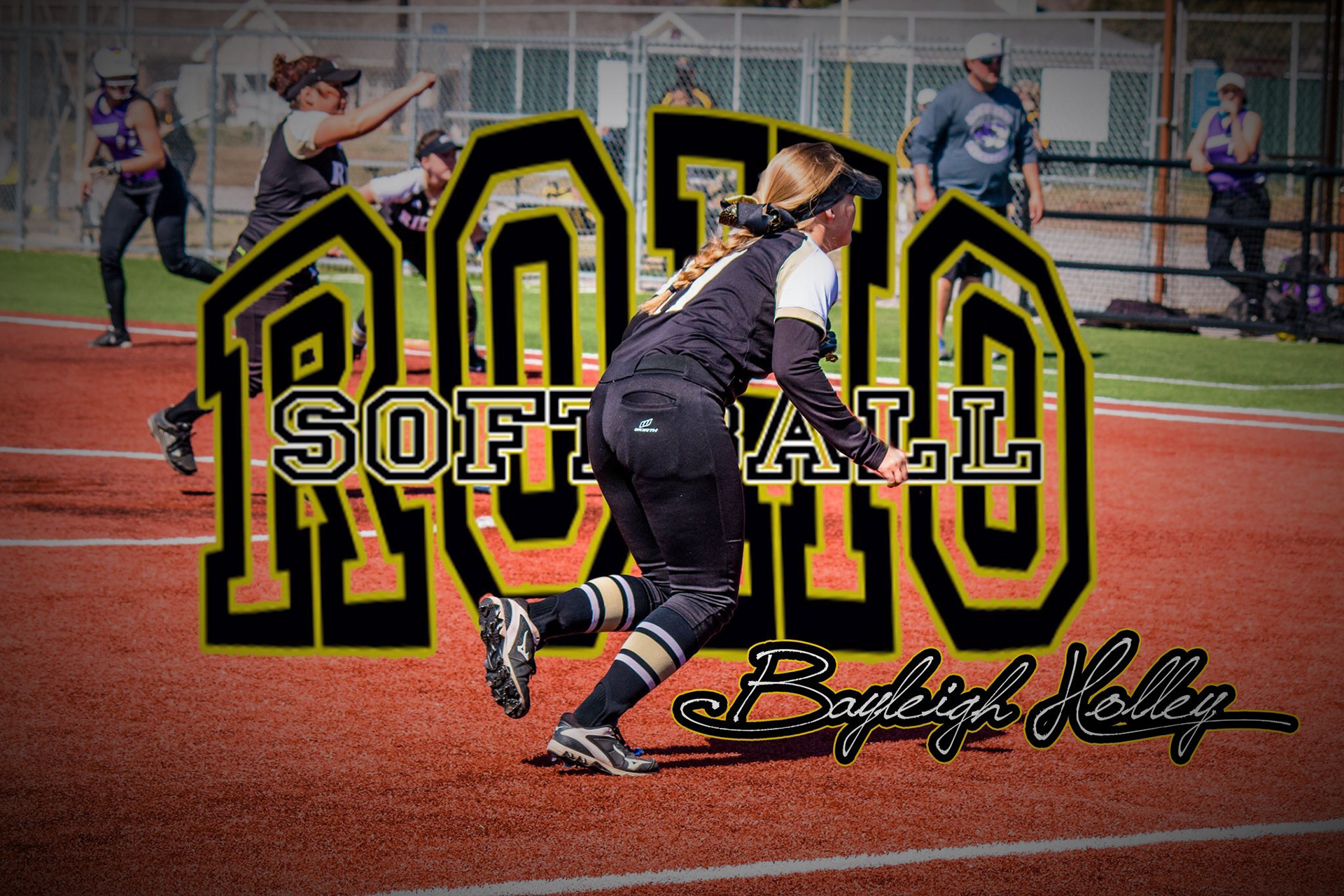 Photo session and editing with school logo super imposed with athletes name.